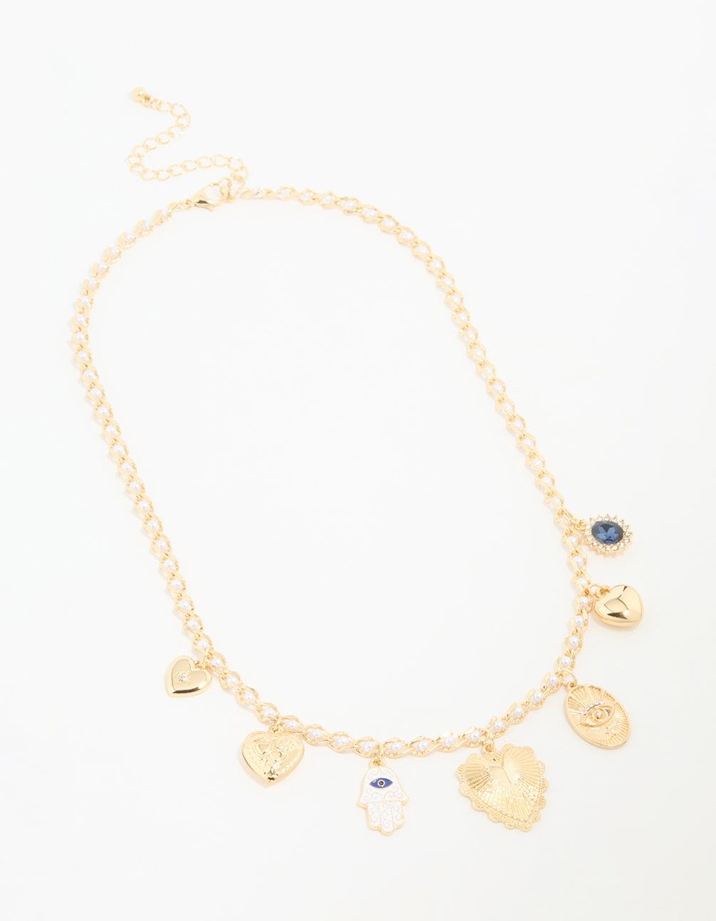 Gold Plated Evil Eye & Heart Charm Necklace