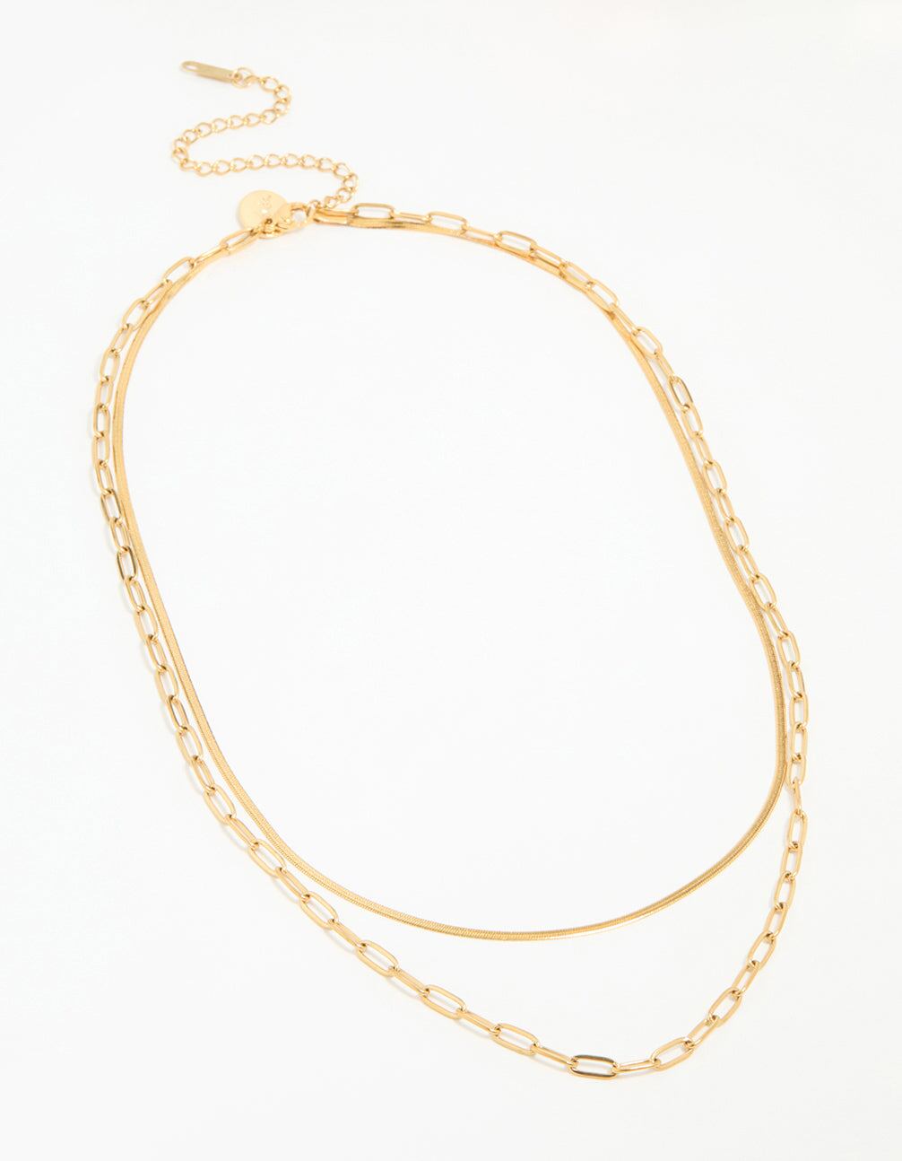 Waterproof Gold Plated Stainless Steel Double Link Layered Necklace