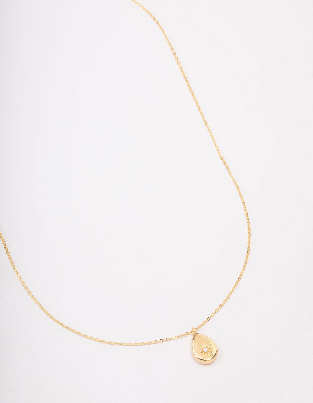 Gold Plated Brass Teardrop Pendant Necklace