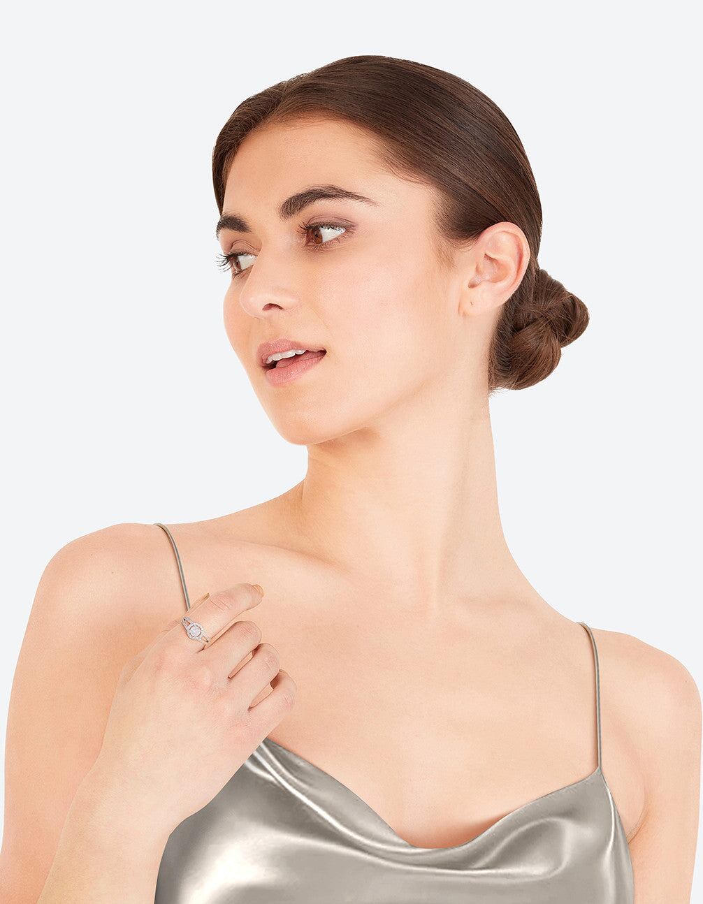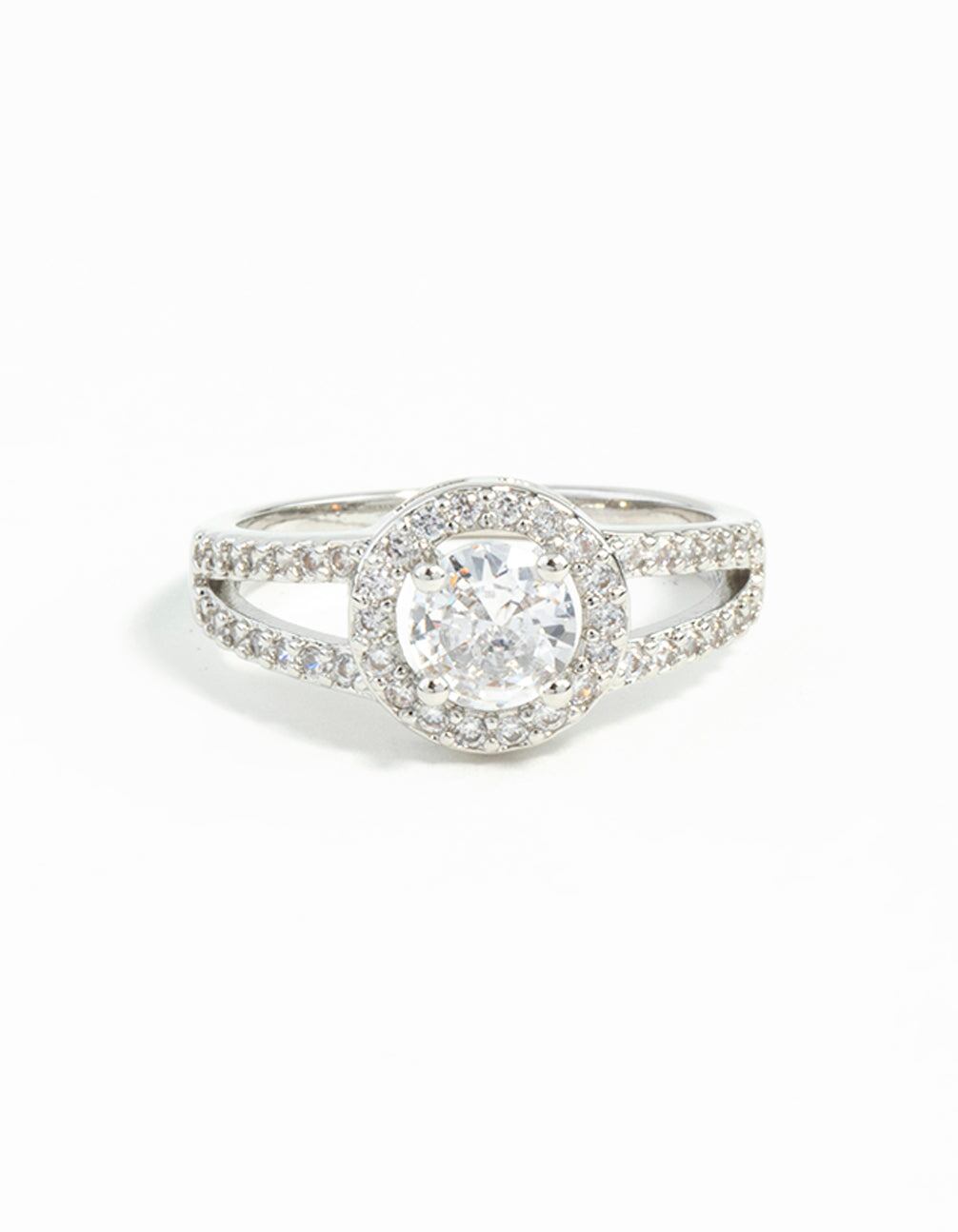 Silver Plated Cubic Zirconia Halo Ring