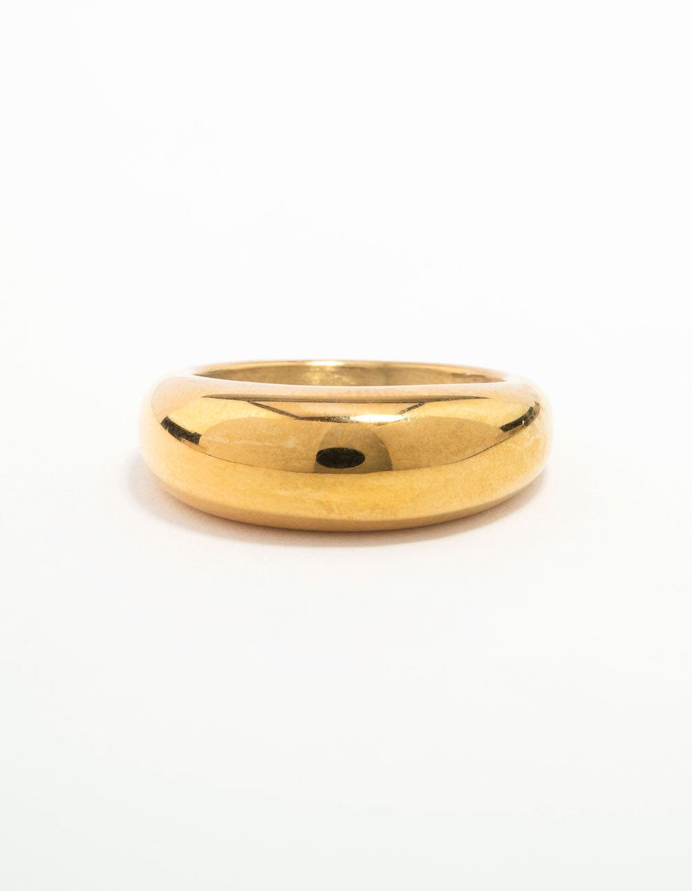 Say hello to your new everyday favourite?the Waterproof Gold Plated Stainless Steel Rounded Band Ring. Sleek and minimal. this fashion ring is crafted from durable stainless steel with a glossy gold-plated finish. making it perfect for adding a subtle touch of sophistication to any outfit. Its rounded band design is timeless and comfortable. so whether you're heading to the office. a brunch date. or even the beach. this ring has you covered. Adventure-proof and waterproof. it's built to keep up with your lifestyle?no need to take it off when you're washing up or caught in the rain. Stack it with other rings for a stylish vibe or wear it solo for effortless elegance.