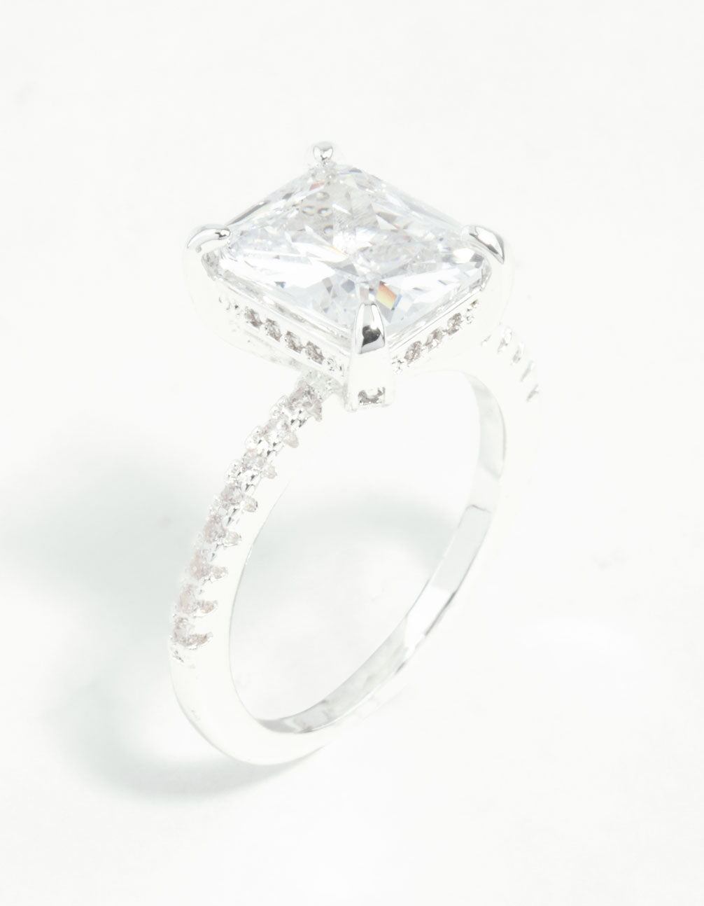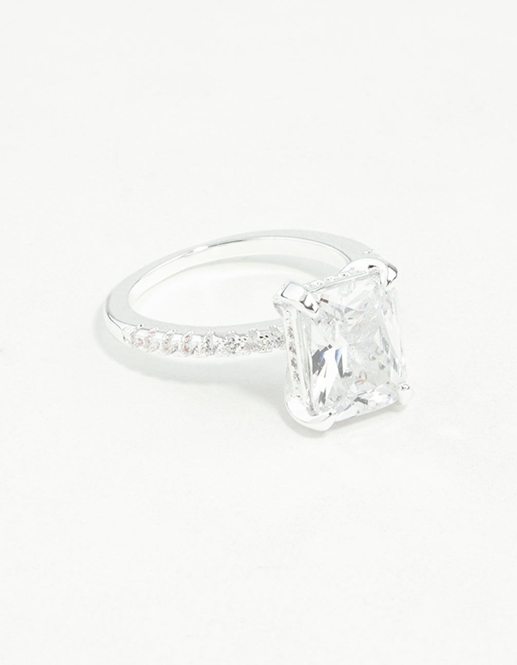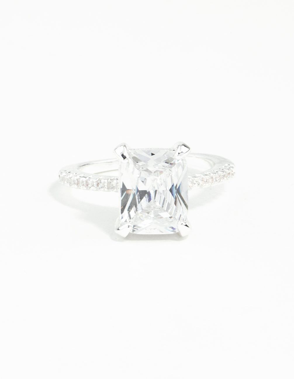 Silver Emerald Cut Cubic Zirconia Diamante Band Ring