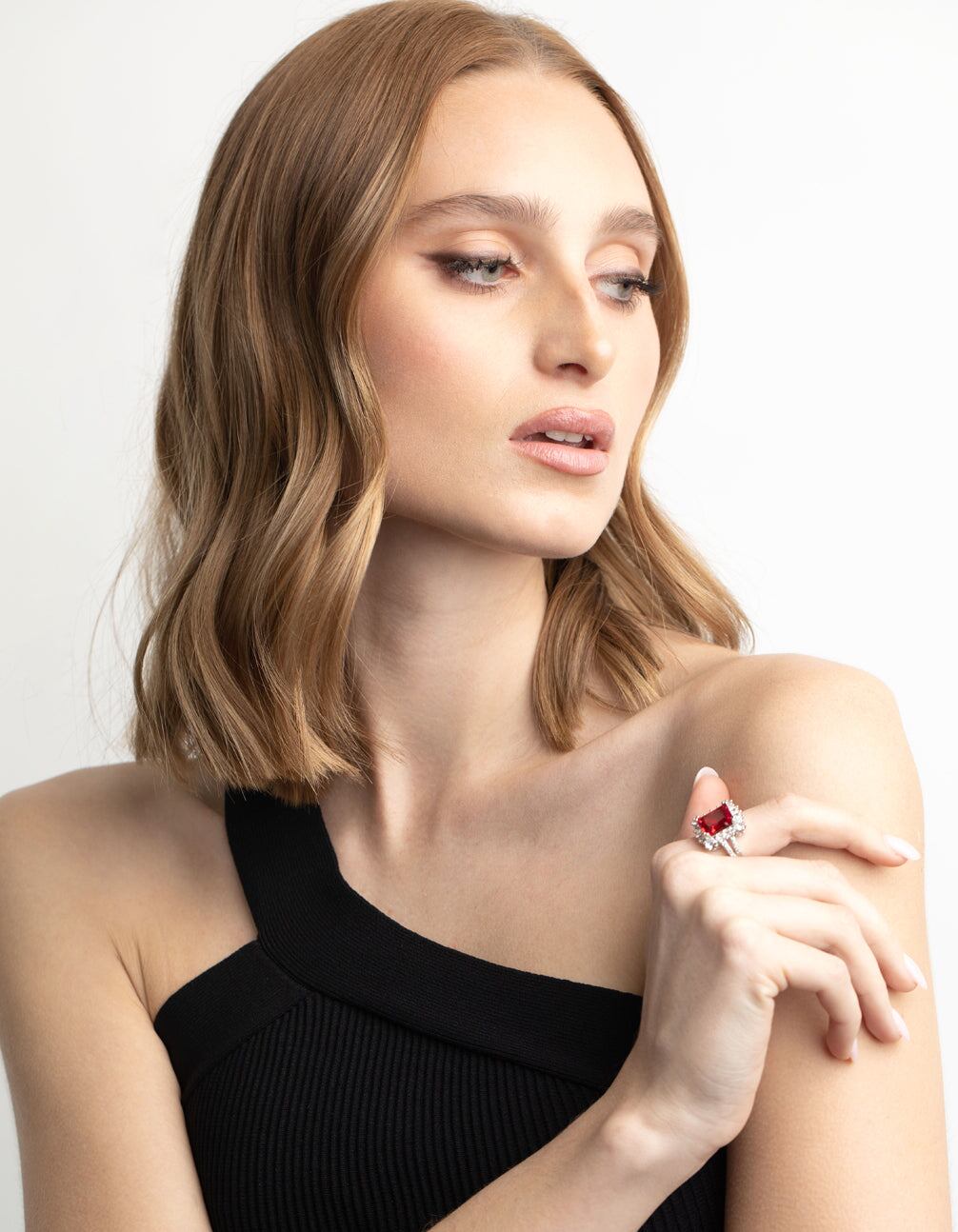 Silver Cubic Zirconia Red Asscher Ring