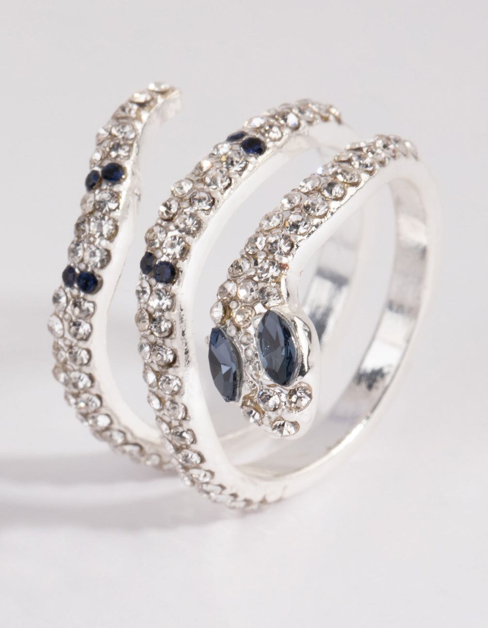 Silver Diamante Blue-Eyed Snake Ring
