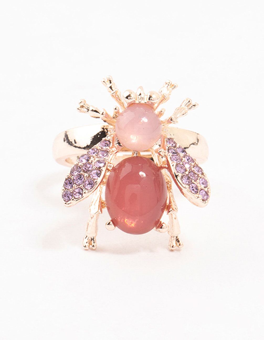 Add a touch of unique flair with this rose gold ring. Featuring a dazzling diamante beetle motif. it's perfect for adding a cool and quirky twist to your look.