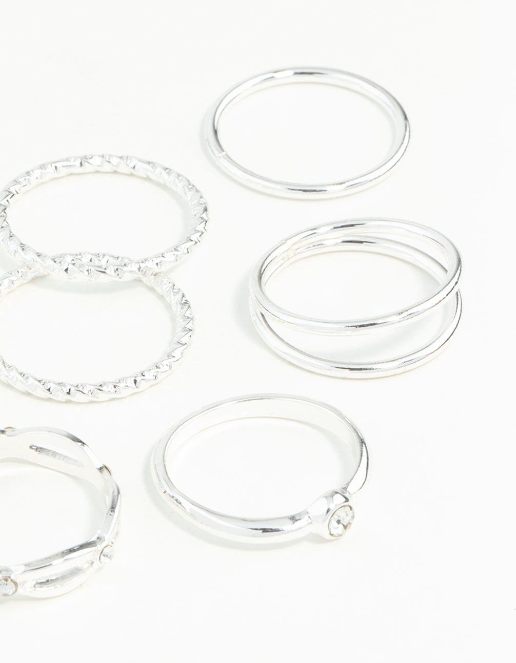 Stack up in style with this multi-pack of textured silver-toned rings with diamante embellishments.