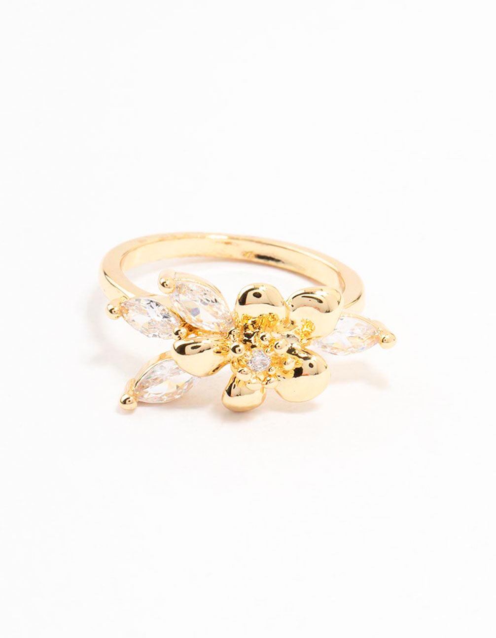 Gold Plated Fine Flower Cubic Zirconia Ring