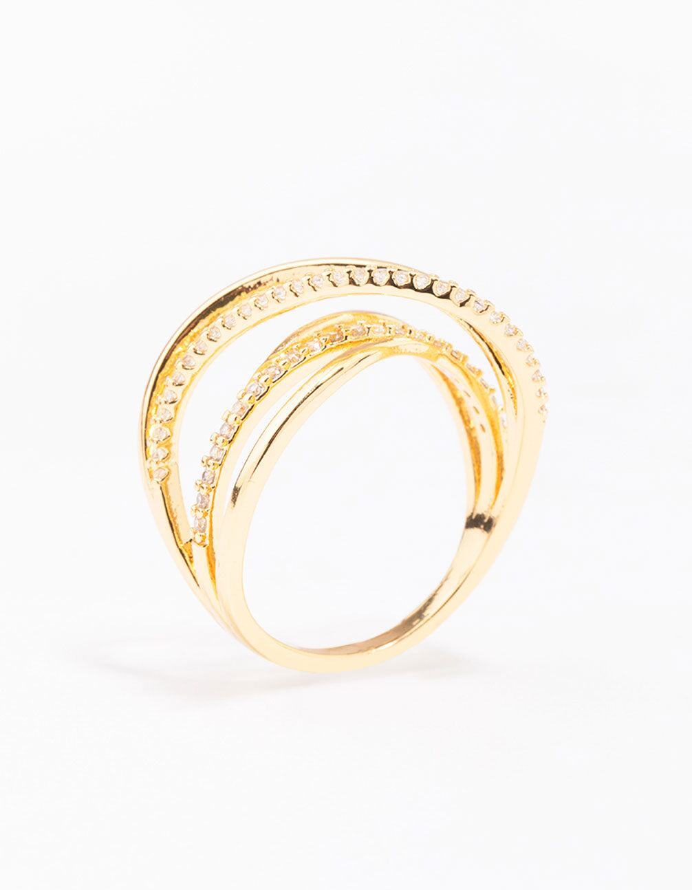 For a signature finish to your look. style this gold plated ring. This layered ring features a wrapped design. encrusted with mini cubic zirconia crystals for a luxe touch.