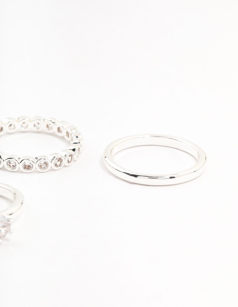Silver Plated Fine Round Cubic Zirconia Stacking Rings 3-Pack