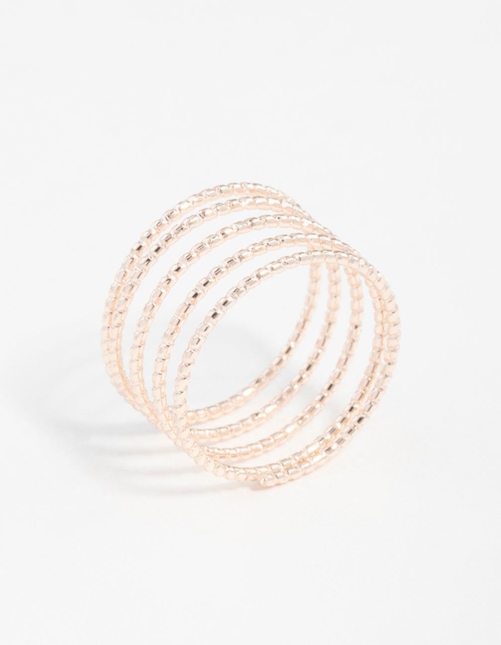 Enhance you style with this rose gold-toned diamond cut spiral ring.