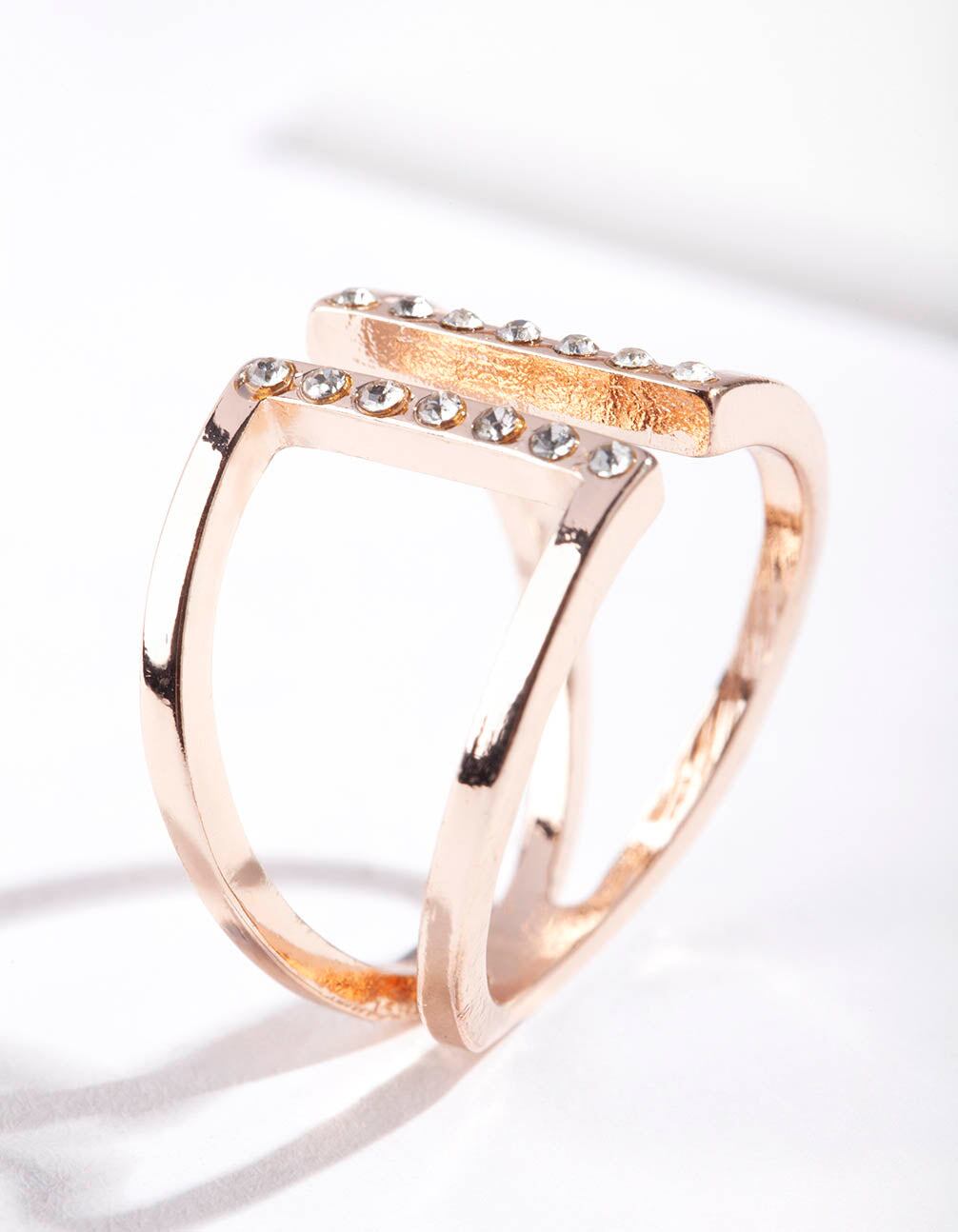 Make a statement in a stunning fashion ring. Stack with other styles for extra impact or wear alone for a refined addition to your ensemble. This ring features a rose-gold-toned open design with diamantes.