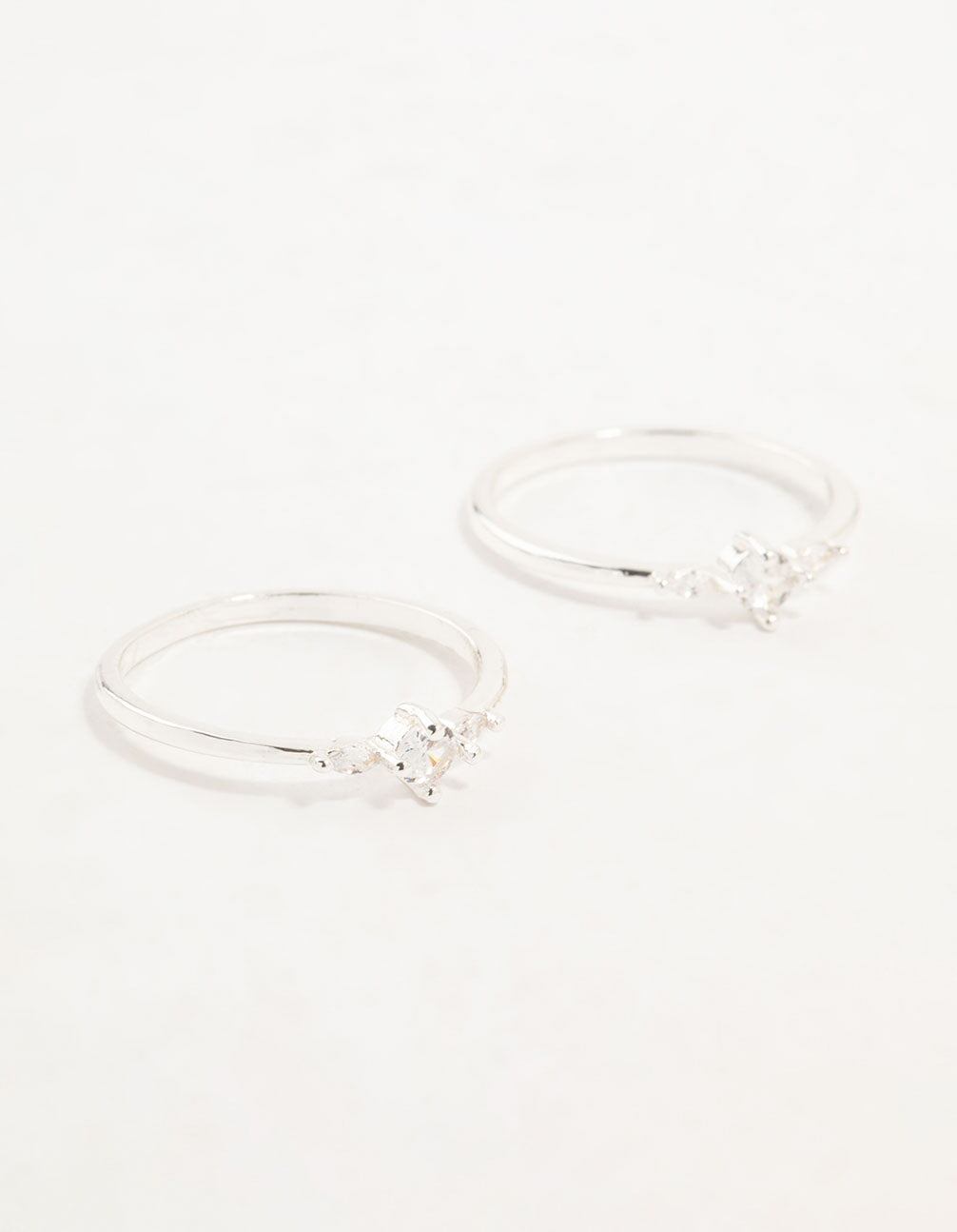 Silver Plated Dainty Cubic Zirconia Stacking Rings 2-Pack