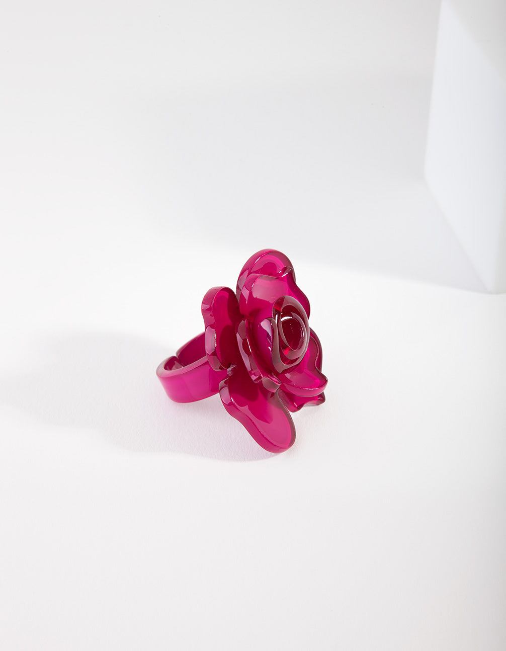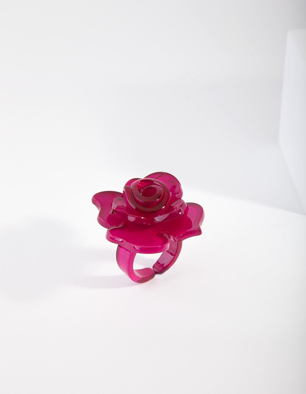 Create a glamorous look and make a statement with this acrylic pink flower ring.