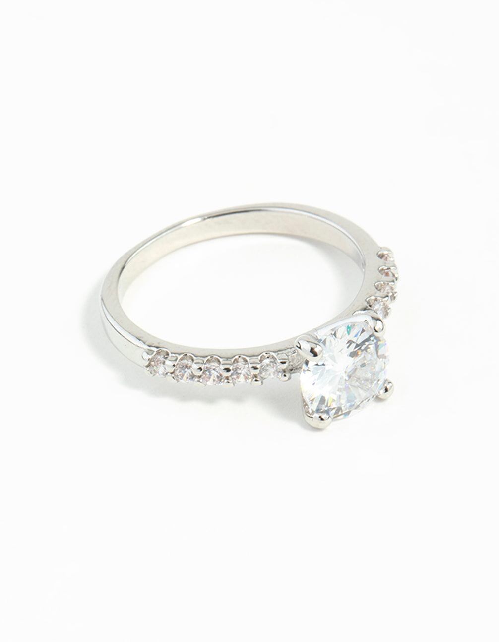 Make a statement in a stunning fashion ring. Stack with other styles for extra impact or wear alone for a refined addition to your ensemble. This ring features a silver-toned setting with cubic zirconia stones.