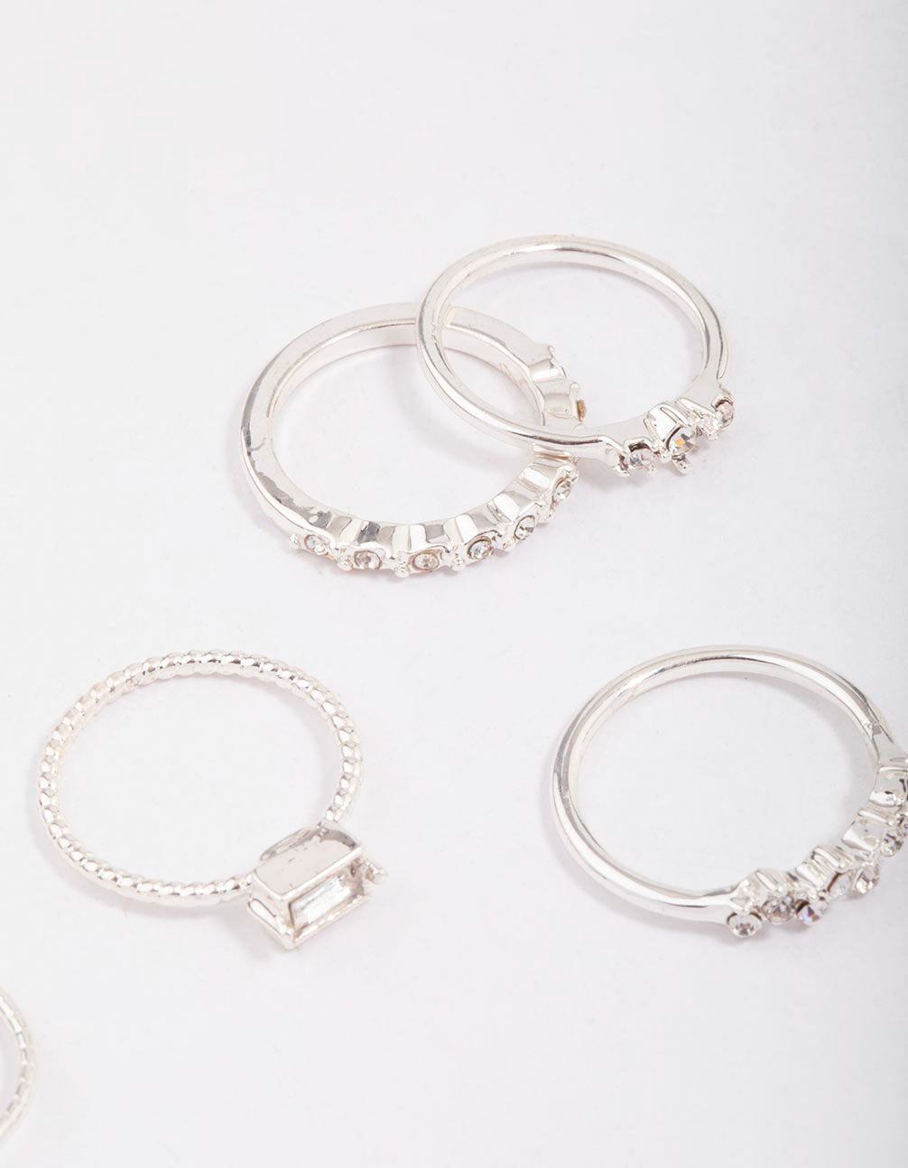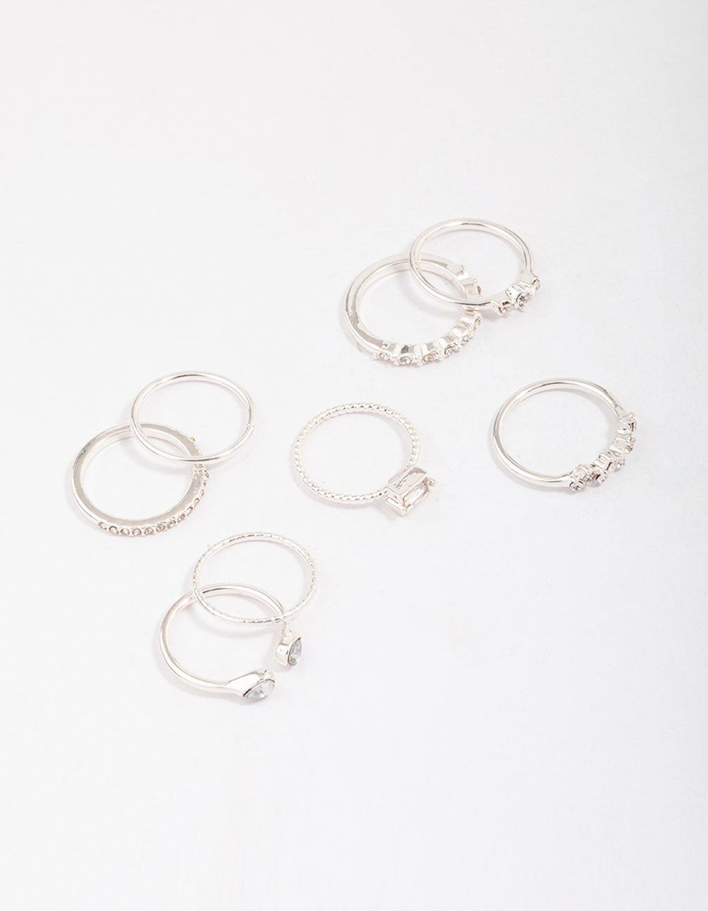 Silver Fine Diamante Ring 8-Pack