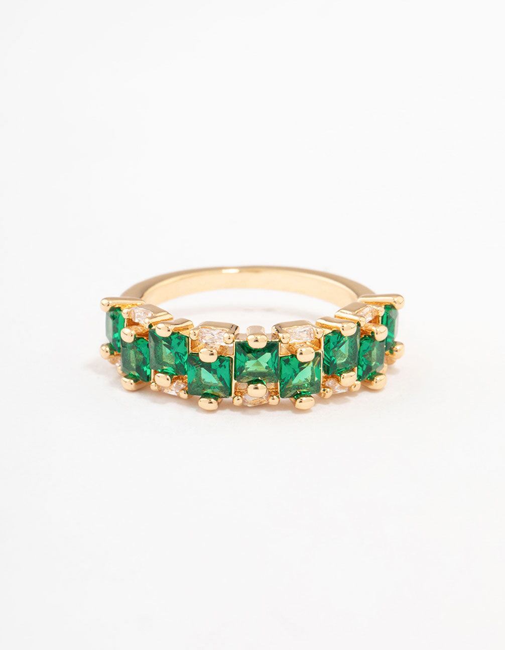 This eye-catching ring is plated with gold and features a cluster of emerald-coloured. cubic zirconia crystals for a pop of colour.