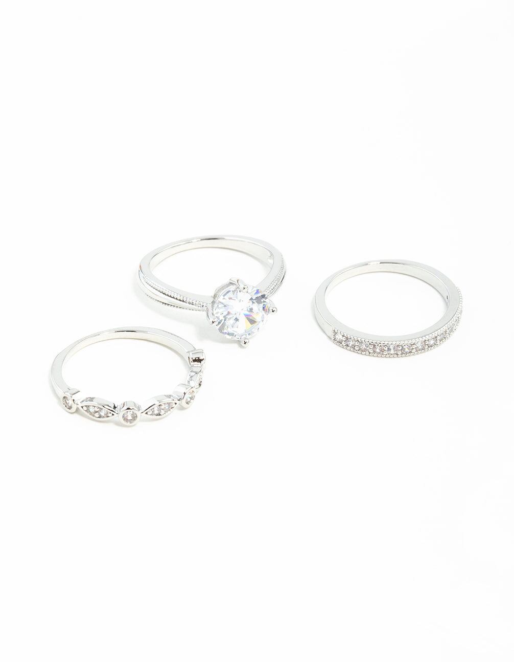 Silver Round Stone Cubic Zirconia Triple Ring Stack