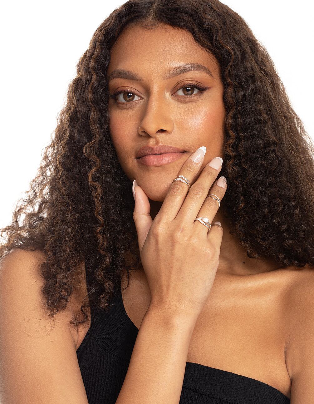 Round out your collection with silver-toned essential styles perfect for any occasion. This pack of rings feature a faux moonstone design.