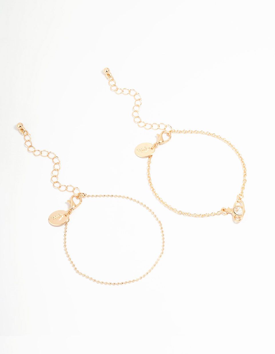 Gold Ball Planet Diamante Bracelets 2-Pack