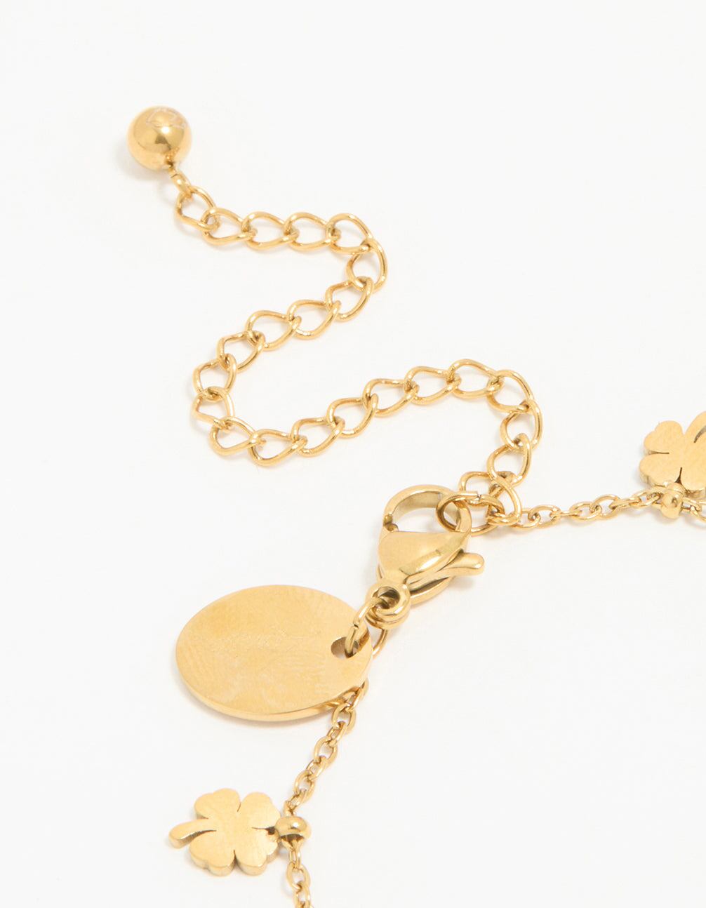 Waterproof Gold Plated Stainless Steel Cubic Zirconia Shamrock Bracelet