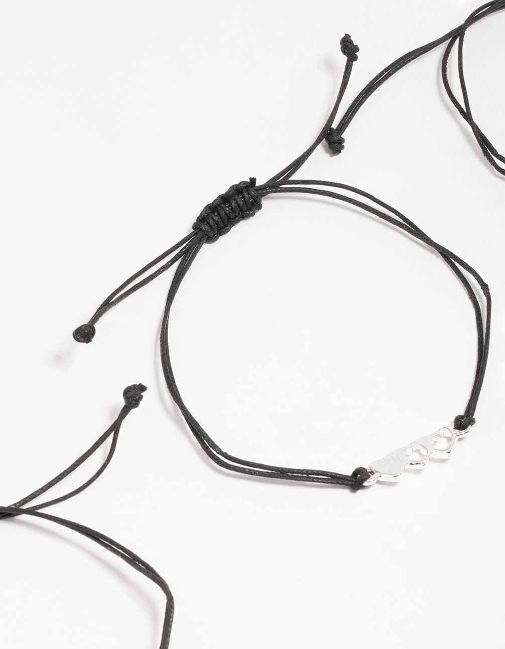 Black Cord Heart Bracelet 3-Pack