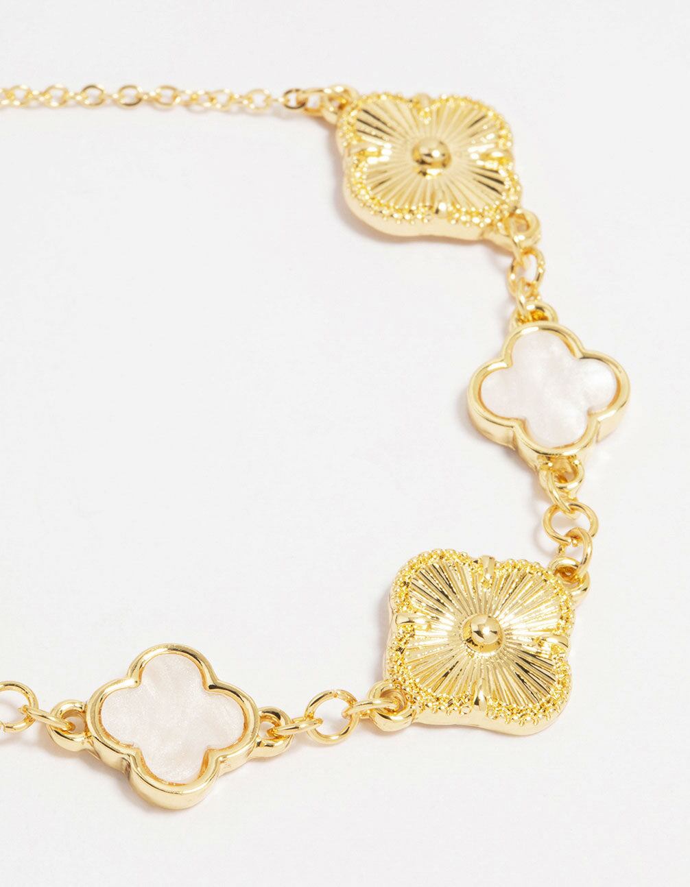 Add a little luxury to your look with this Gold Plated Brass Alternating Flower Bracelet. This bracelet is crafted from gold-plated brass and features a chic alternating flower design.