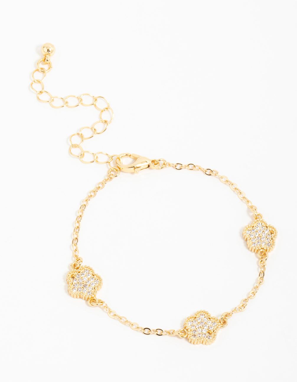 Gold Plated Brass Cubic Zirconia Flower Trio Toggle bracelet