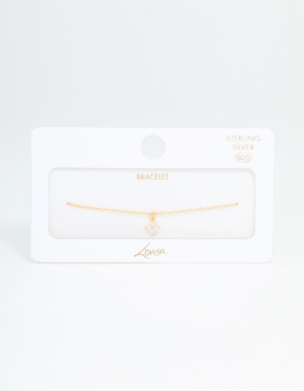 Gold Plated Sterling Silver Cubic Zirconia Tiny Flower Toggle Bracelet
