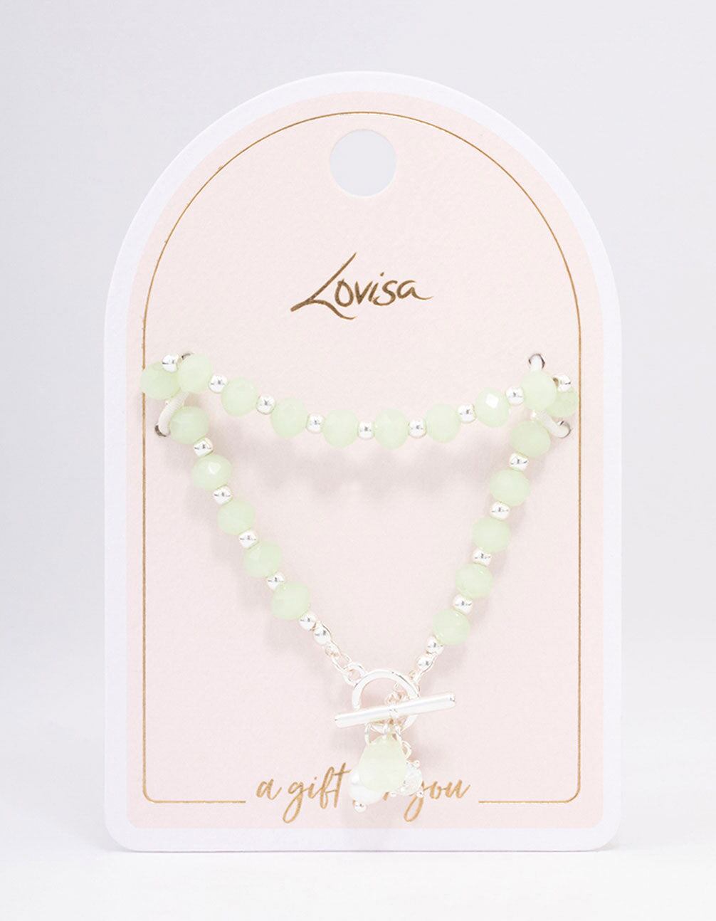 Curate your stack with this stunning. silver-toned bracelet. This stretchy bracelet is designed with a collection of jade-coloured beads. adorned with pearl accents for a refined finish.