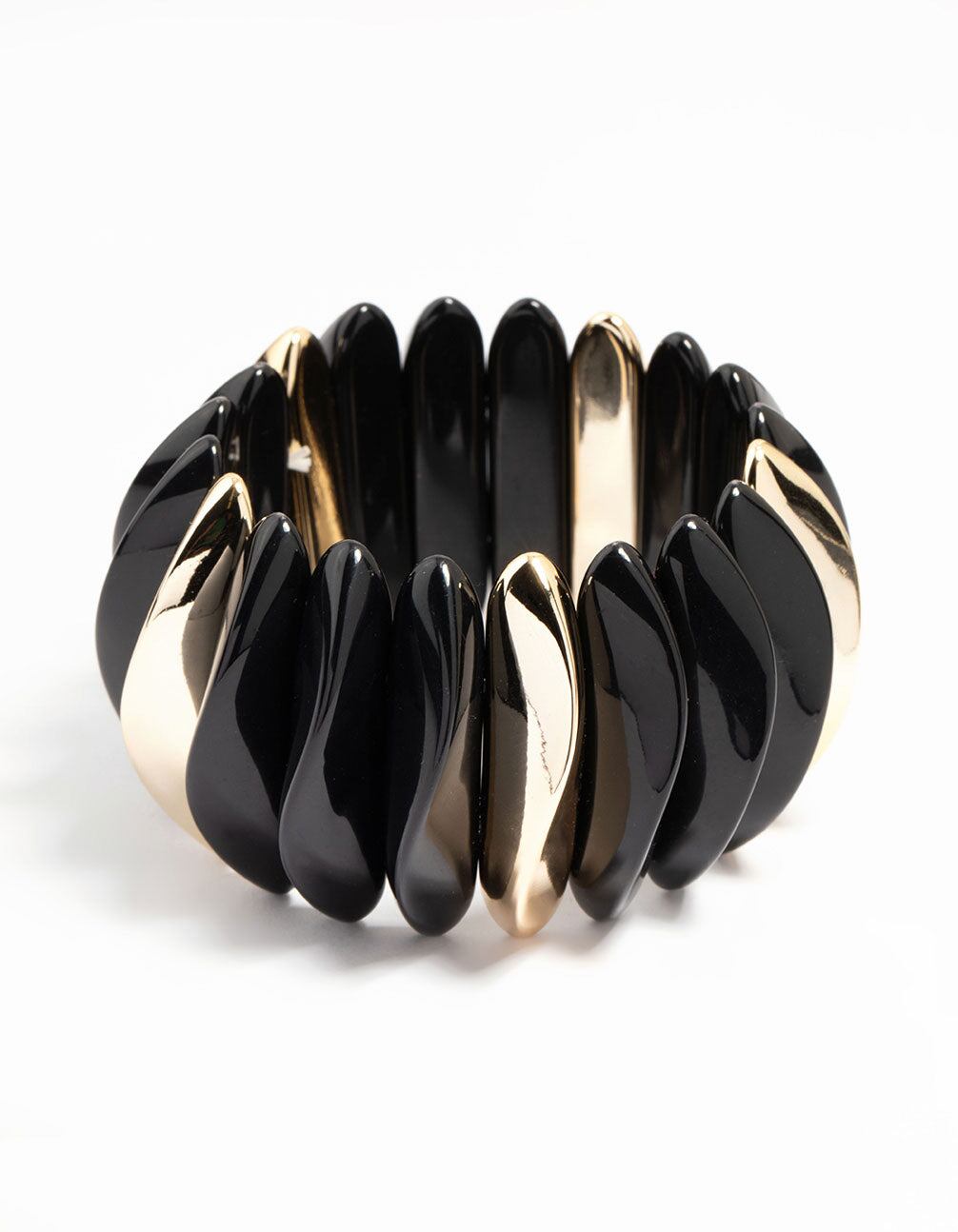 Add a bold edge to your wristwear with this Gold & Black Beaded Stretch Bracelet. This bracelet combines sleek black beads with gold accents for a striking. modern look.