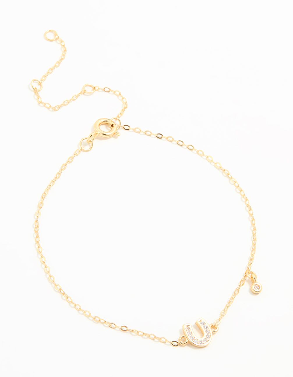 Gold Plated Sterling Silver Diamante Horseshoe Charm Bracelet