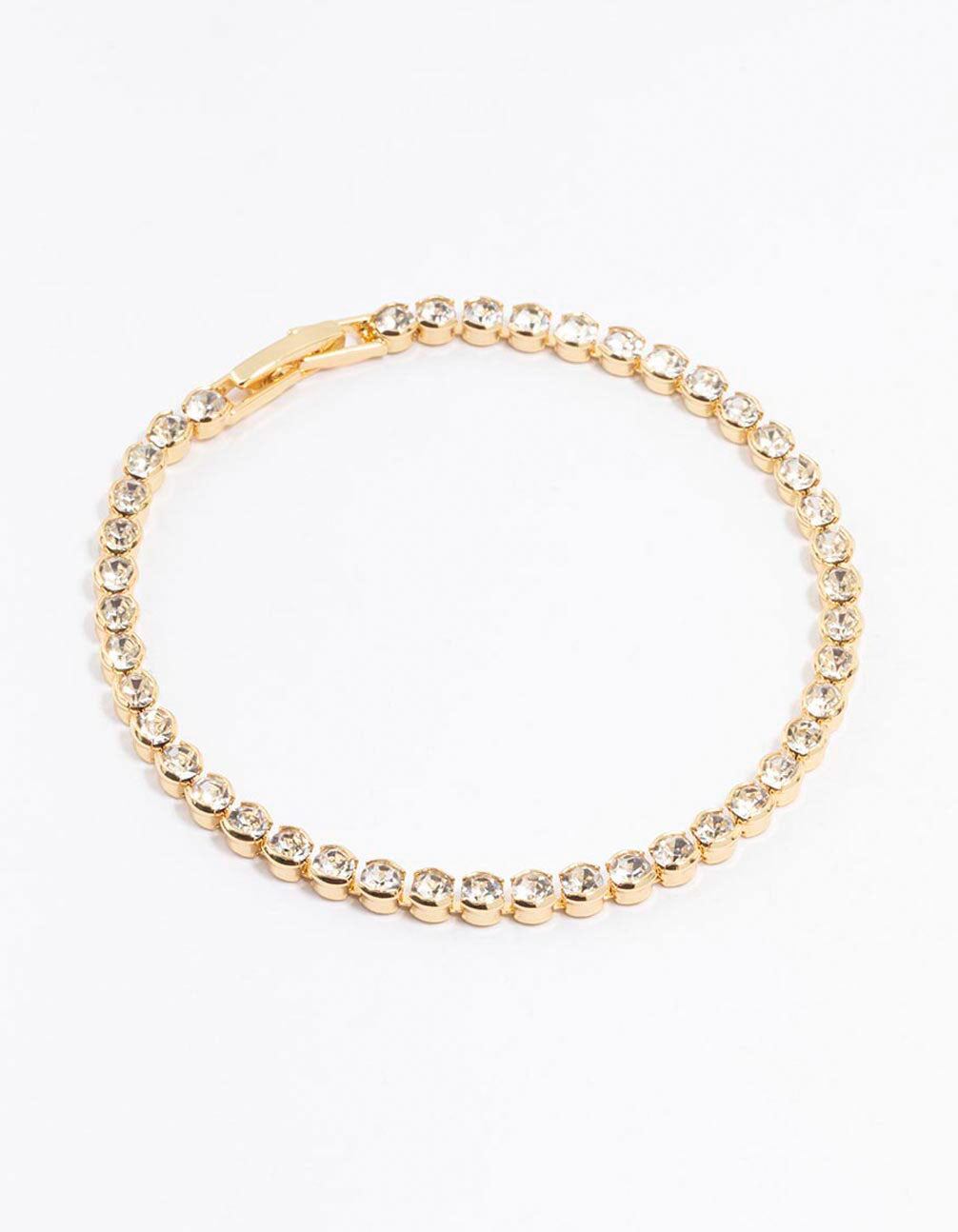 Indulge in the irresistible allure of a tennis bracelet with this Gold Plated Diamante Tennis Bracelet. This diamante encrusted piece elevates any ensemble.