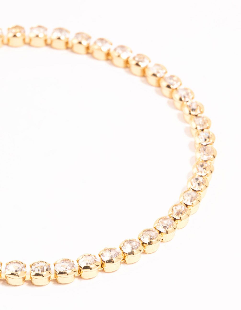 Upgrade your style with the Gold Round Diamante Tennis Bracelet. This elegant tennis bracelet is perfect for all occasions. featuring shimmering diamante crystals and a sleek gold-toned base. Slip it on and enjoy the compliments!