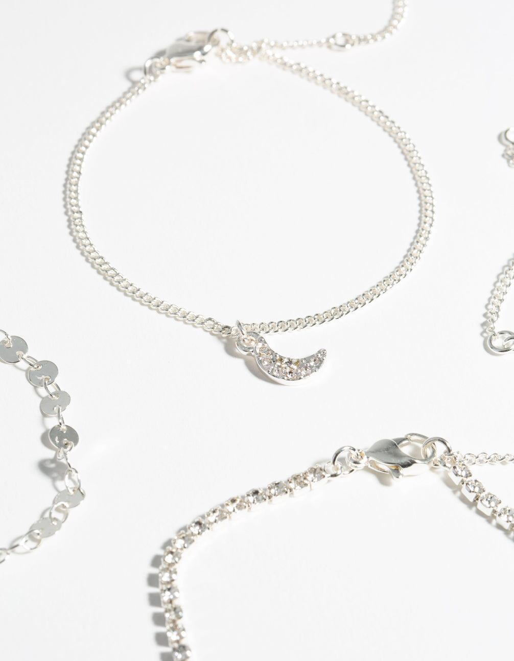 Lovisa loves a bracelet stack! Mix and match styles to create your own customised look. or wear them alone for a curated addition to any outfit. This silver-toned set can be worn on either the ankle or your wrist and they have a dreamy. celestial vibe.