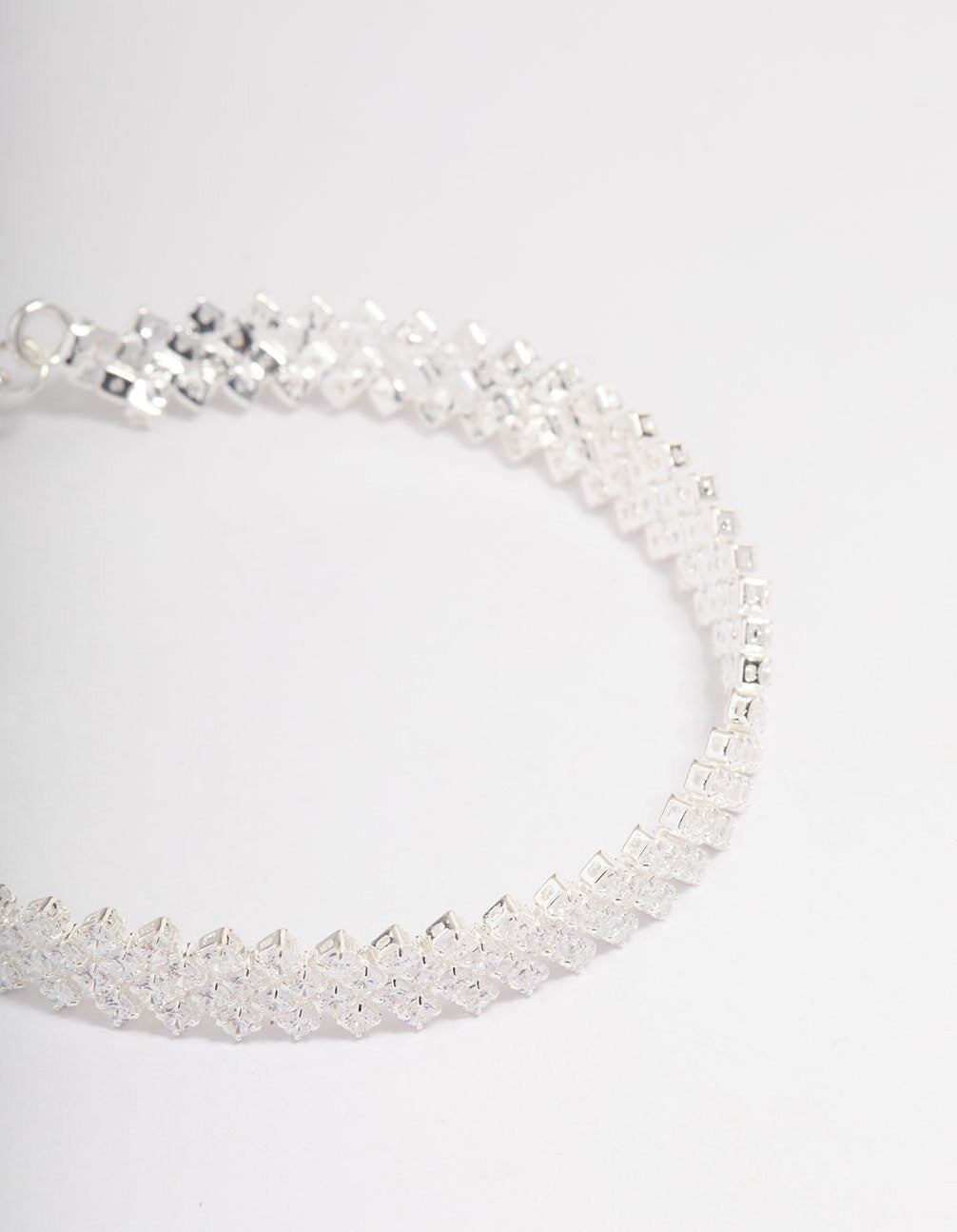 Material: Silver PlatedThis diamond bracelet is crafted with genuine silver plating for long-lasting shine and features a diagonal pattern for added interest.Material: Silver PlatedOccasion: Special OccasionsFeature: Cubic Zirconia Crystals