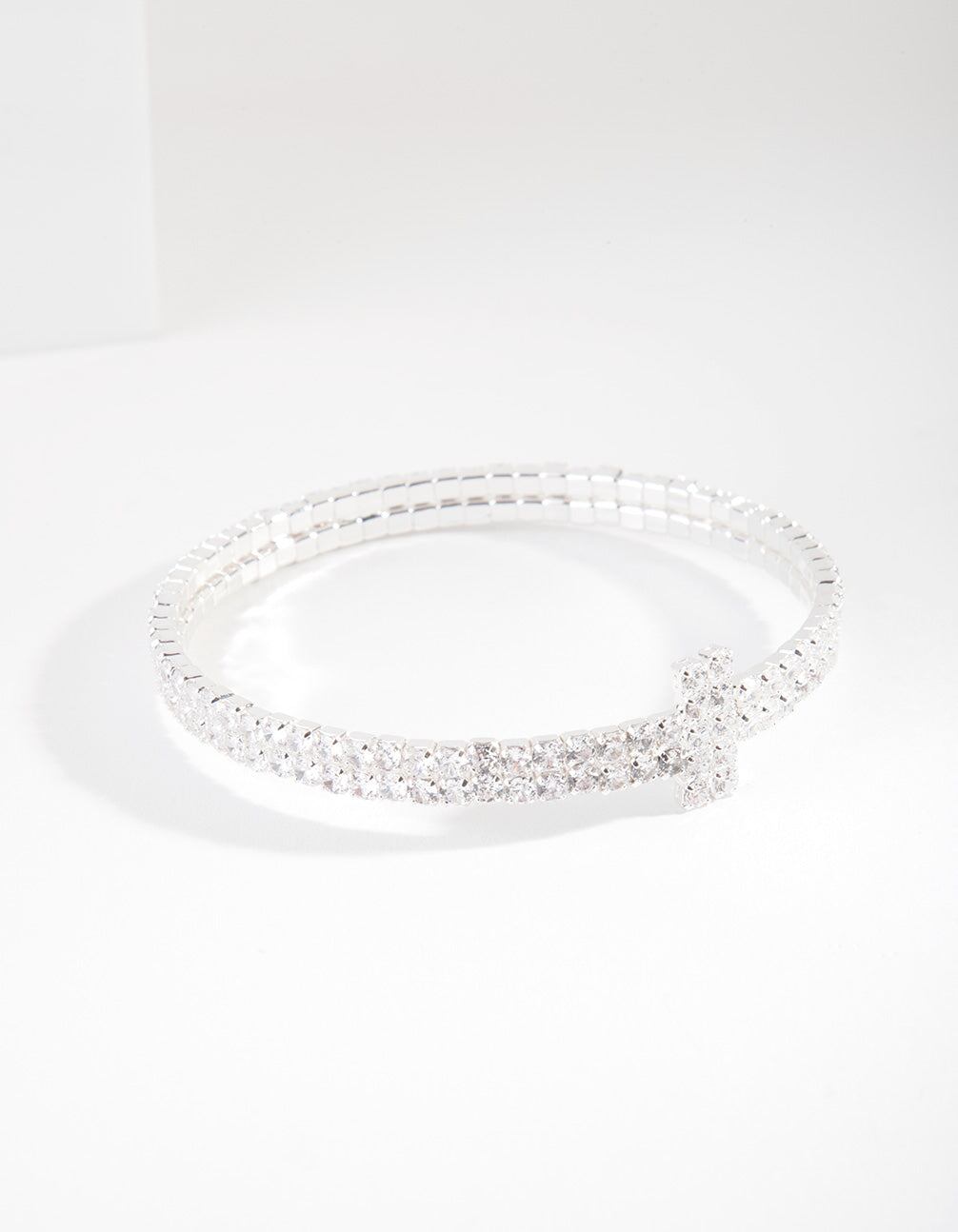 Silver Cubic Zirconia Row T Cuff Bracelet