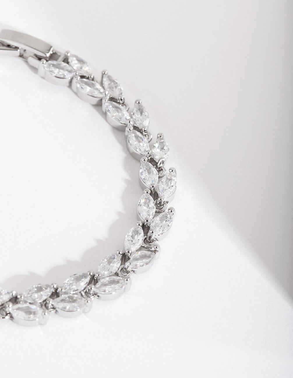 Silver Diamond Simulant Petal Row Tennis Bracelet