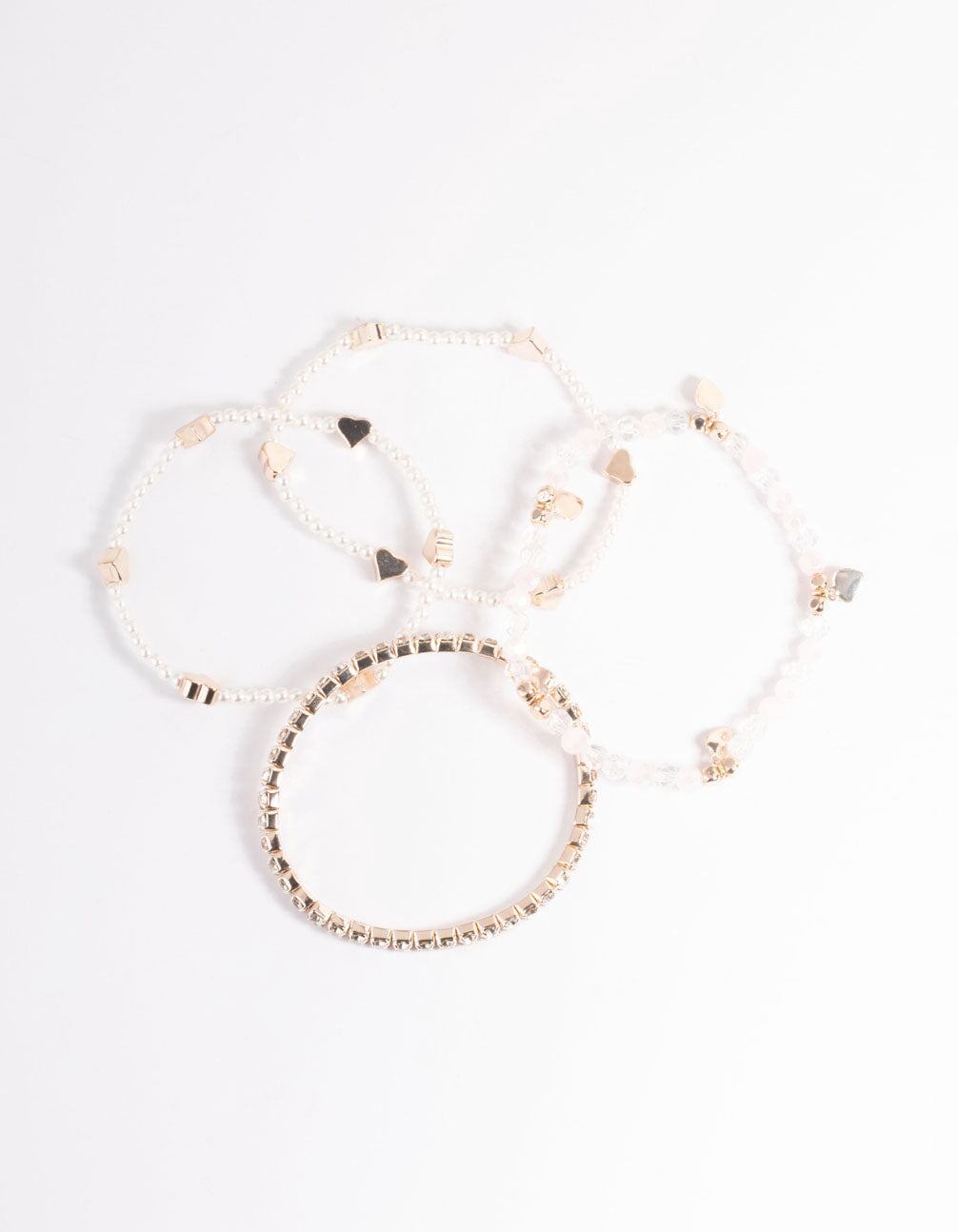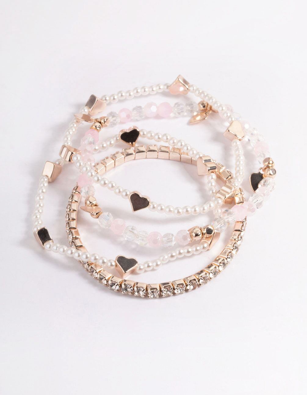 Kids Rose Gold Heart Diamante Stretch Bracelet 4-Pack