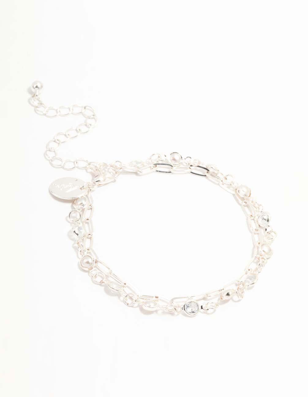 Upgrade your wrist game with this Silver Layered Link & Diamante Bracelet. The sleek. layered links and shimmering diamante details create a dazzling look that's perfect for any occasion.