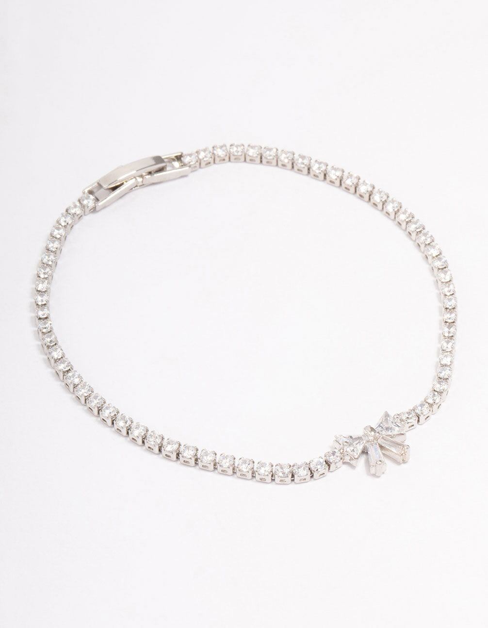Curate the ultimate stack with this luxe. silver-toned tennis bracelet. This dainty chain bracelet features a strand of cubic zirconia crystals. adorned with a diamante bow motif at the front.