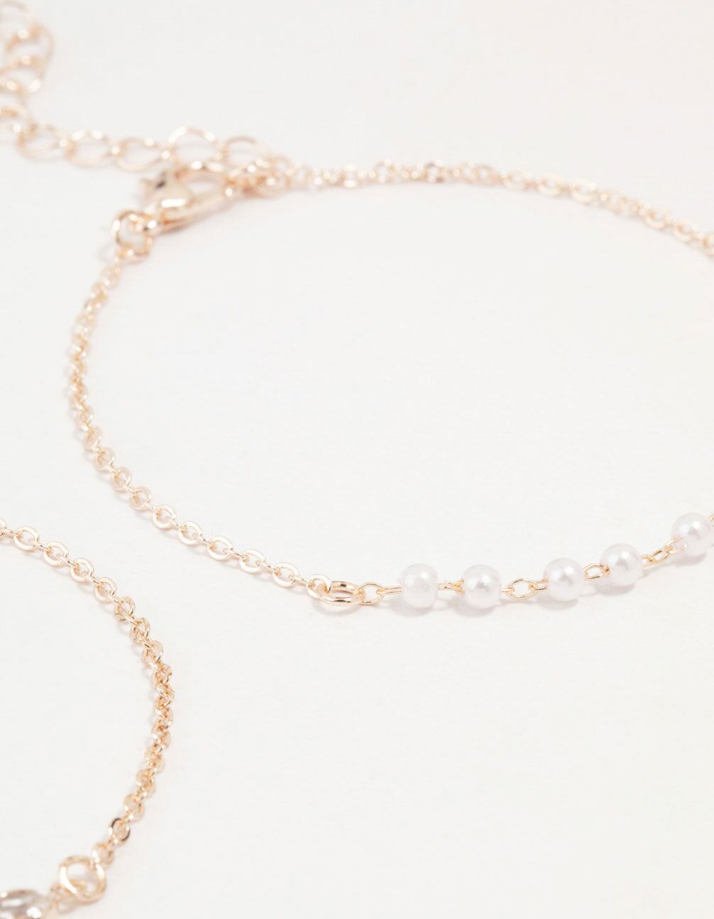 Rose Gold & Pearl Station Diamante Bracelets 2-Pack