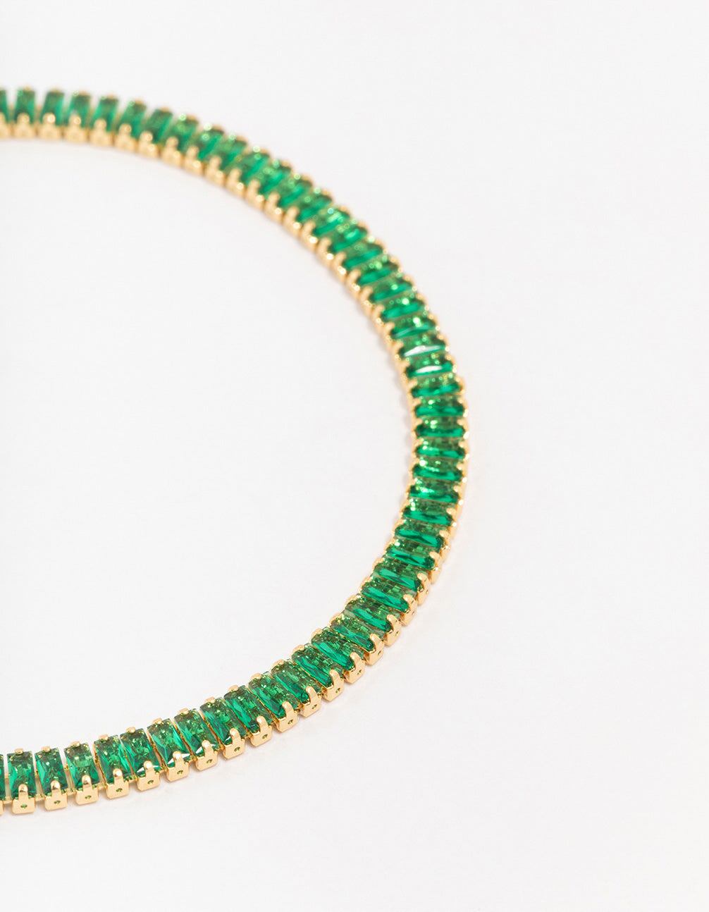 Gold Plated Brass Crystal Baguette Tennis Bracelet