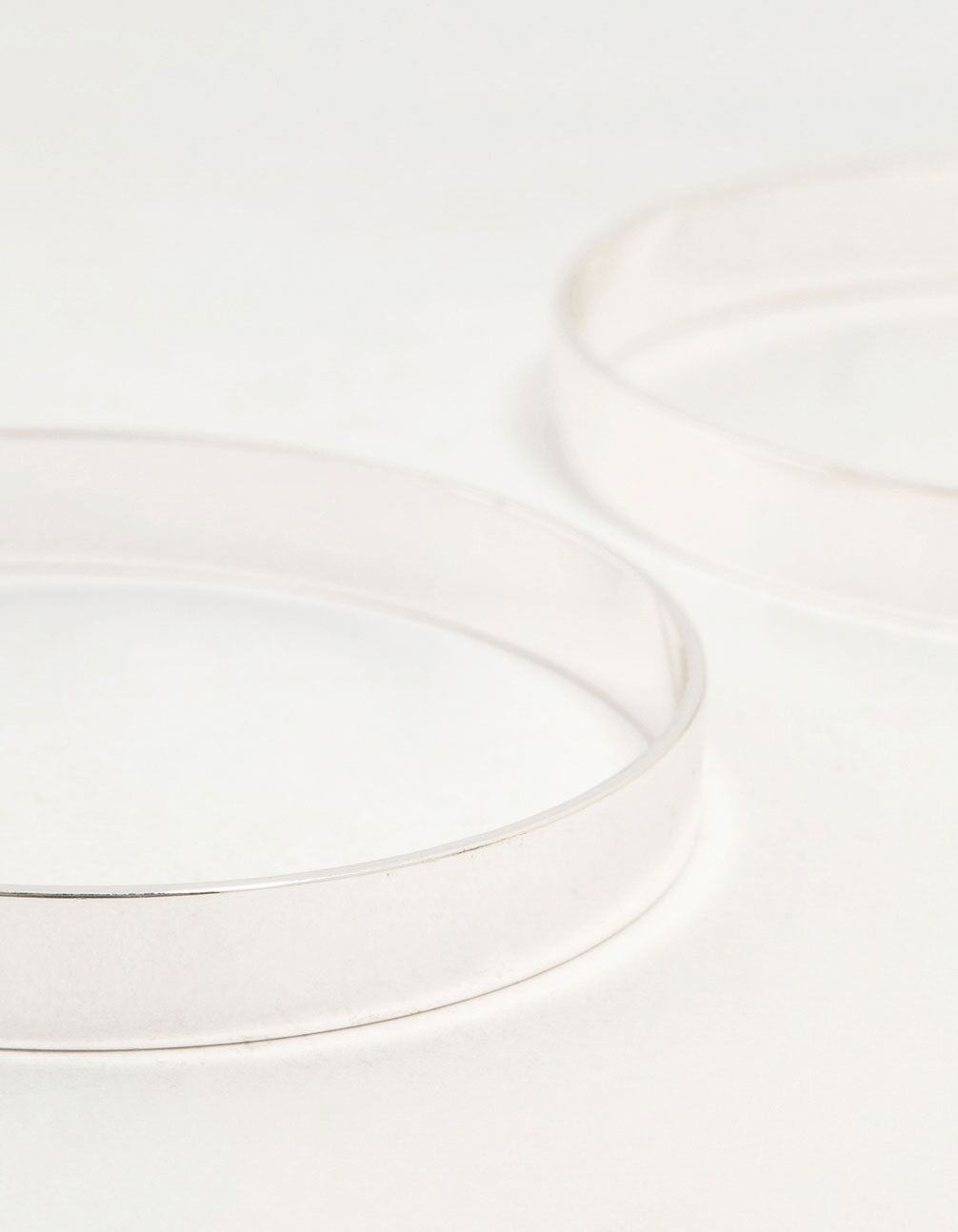 Upgrade your wrist game with this silver toned bangle pack! Featuring two sleek. flat-edge bangles. it's perfect for a stylish stack.